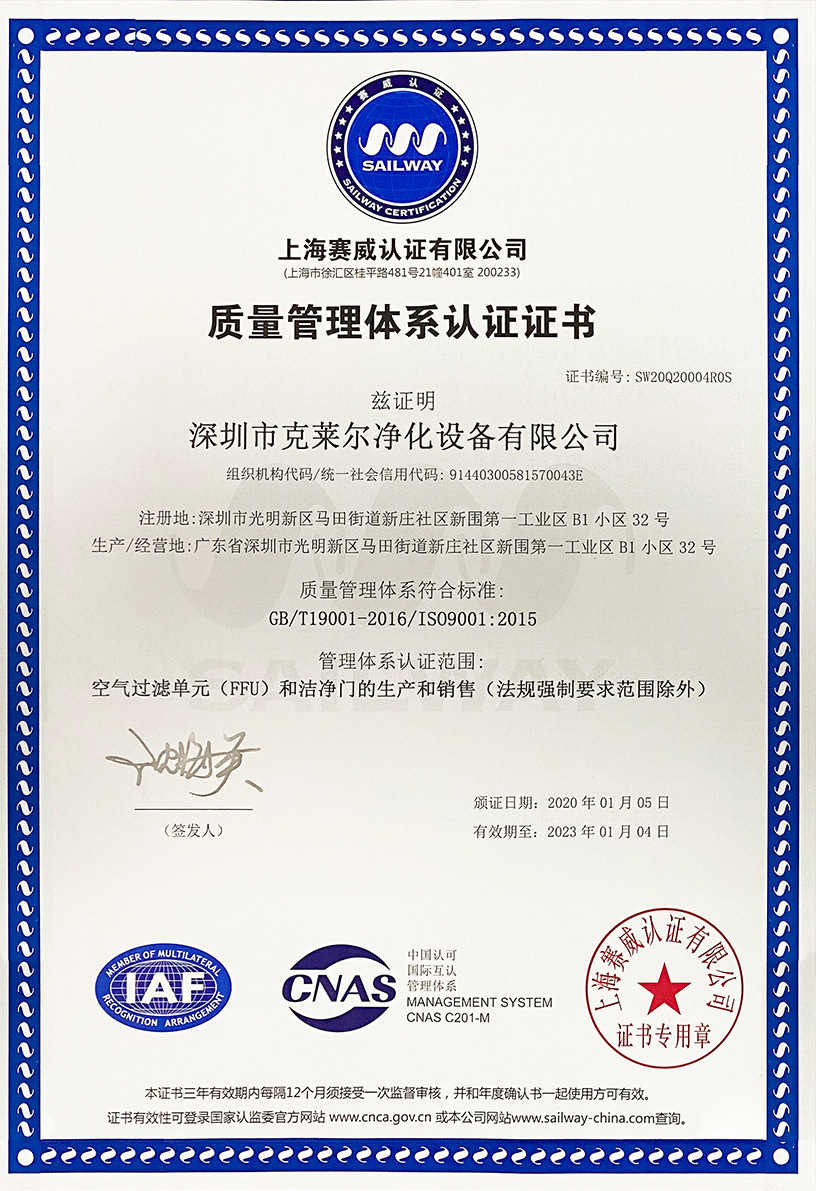 廣東克萊爾潔凈科技有限公司是一家集生產(chǎn)、研發(fā)、銷售于一體的專業(yè)潔凈門窗生產(chǎn)企業(yè)。 公司擁有現(xiàn)代化標(biāo)準(zhǔn)廠房10000多平方米,配備全自動(dòng)靜電噴涂流水線及 3000平以上萬級(jí)無塵生產(chǎn)車間,專供潔凈門及中空窗的生產(chǎn)裝配等。公司不斷引進(jìn)一流生產(chǎn)設(shè)備(如瑞士百超激光切割機(jī)、日本AMADA數(shù)控折彎?rùn)C(jī)、超聲玻璃清洗機(jī)等),采用國(guó)際最先進(jìn)的技術(shù)及裝備確保產(chǎn)品品質(zhì),是華南區(qū)域最具規(guī)模的專業(yè)潔凈鋼制門及中空潔凈窗生產(chǎn)廠家。公司在同行業(yè)率先通過ISO9001質(zhì)量體系認(rèn)證,并先后獲得多項(xiàng)專利認(rèn)證及榮譽(yù)證書。 KLE purification equipment Co., Ltd. is a set of production, research and development, sales in one of the professional clean doors and windows production enterprises.The company has a modern standard workshop of more than 10000 square meters, equipped with automatic electrostatic spraying line and more than 30 million level dust-free production workshop, specially for the production and assembly of clean doors and hollow windows. The company constantly introduces first-class production equipment (such as Swiss Baichao laser cutting machine, Japanese AMADA CNC bending machine...